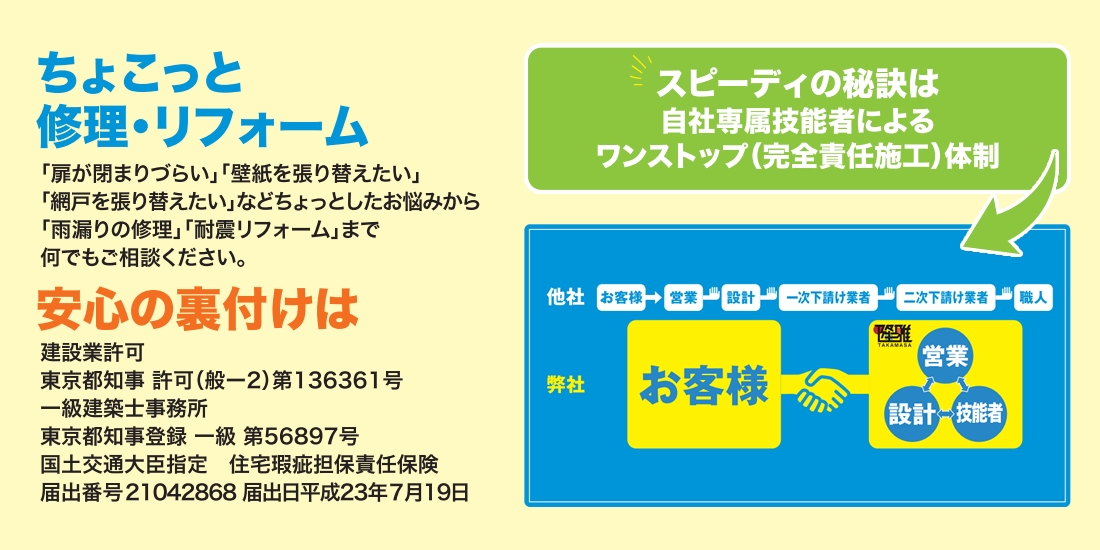 「ガラスが割れた」「電気がつかない」などちょっとしたお悩みから「耐震リフォーム」「オール電化」まで何でもご相談ください。