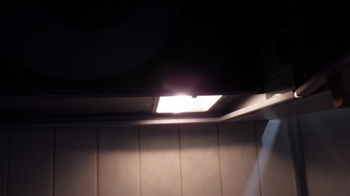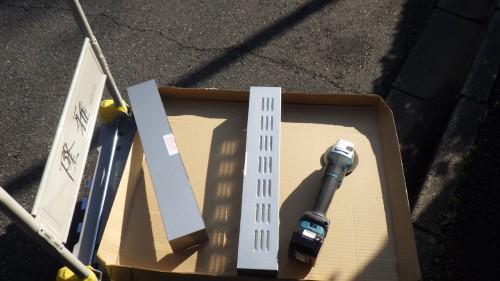 換気扇、量サイドに取付けてある吊り戸棚の高さに合わせて換気扇の前幕板を加工します