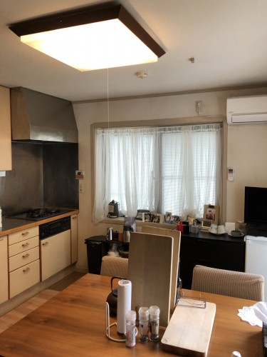 システムキッチンの天板は残し、ガス調理機・収納部を取外した状態