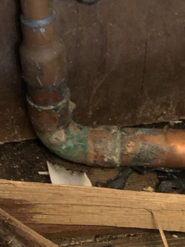 エルボに緑青(腐食)が見受けられますが、漏水・ピンホールは見受けられません。