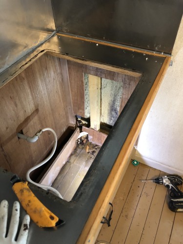 これ以上、先程開けた収納開口部からでは作業続行は不可能な為、ガス調理器・収納を取外す事に