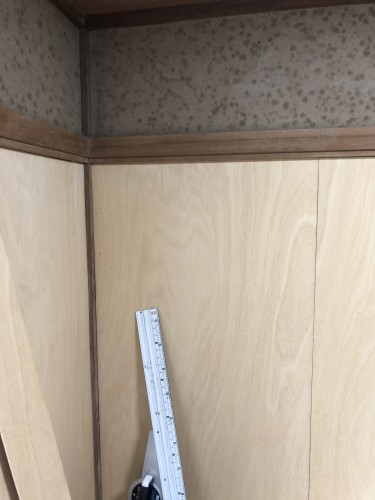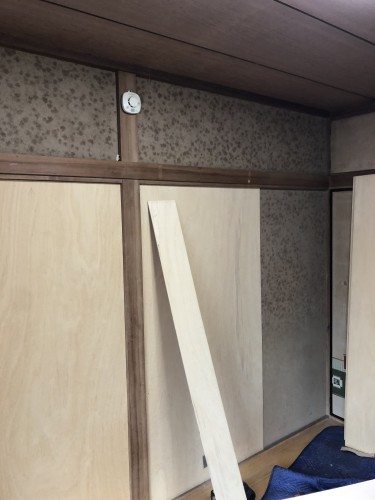クロスのはがれを防止する為に、厚み4ミリのラワン合板を壁全体に捨て張りします。