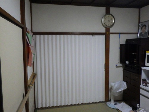 【アコーディオンカーテン】により台所とリビング(居間)を間仕切ることとしました。
