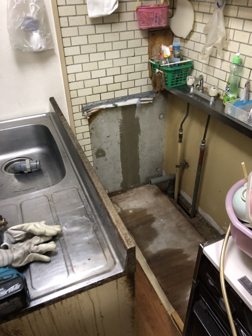 (台所のキッチンシンクを取り外した状況の画像)